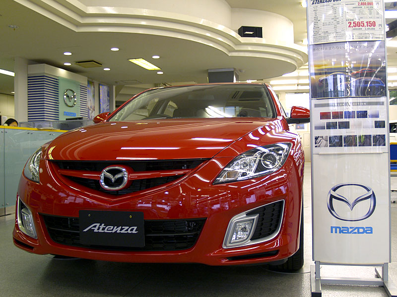 ちょっと前にマツダでクーラント交換の待ち時間に、新型アテンザの試乗をしてきましたよ。初っ端リバースに入れようとして6速と。RX-8と違ってリバースは1速の位置で押し下げ。ん〜、ここいらへん、セミATの+-の方向同様、せめてメーカー単位で統一してほしいなあ。しかし驚いたのがシフトの入り具合。FFのシフトってえと概ねワイヤを介してるんでモニョモニョした手応えなんだけれども、これが実に短いしトロークでカッチリした手応え。さすが欧州で売れてるだけあるねえ。ただその弊害か、サイドブレーキのレバーがコンソールの左側にあるんで、右ハンドルだとちょいと違和感が。まあこの辺は慣れでしょうが。慣れと云えば、クラッチペダルの長いストロークに対して繋がるのが割と浅い位置にあるんで、いつもの調子(俺調べ)で操作すると無駄にアクセルを吹かしてちょっとハズカシい感じ。