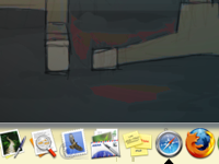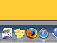 で、ちょいとアレだなと初っ端思ったのが、Dock内の生きてるアプリがどれだかチト判りづらい。以前はアプリのアイコンの下に黒い三角形の印が付いたんだけど、今回はテロ~ンとしたメタル調に合わせてか、こんな具合に反射で強調してんのが生きてるアプリと。そう云う事らしいです。まあ慣れの問題ですかねえ。もう少し強調した方がヨサゲだと思うのですよ。