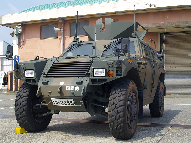 空自からは飛行機だけじゃなくて炊事車と本土防空の要のペトリオットさんもいらしてました。これ花火大会で使ったんですかね。なんてね!陸自からは軽装甲機動車等。こいつはちょいと珍しいですよ。どこがって?いや、これワイヤーカッターとか付いてますし。国際教なんて書いてあるけど、外地に行った車両かしら。