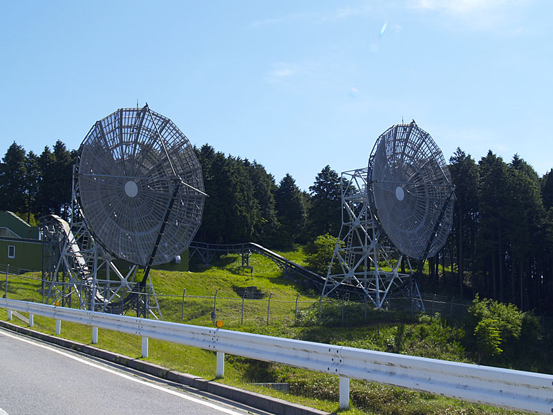 さてこの退屈男、昨日は三重県は津の山奥、笠取山のレーダーサイトまでパラボラ見物に行って参りました。毎度霧がすごくてさっぱり見えやしないでお馴染みの笠取山ですが、今回は有り難いことにピーカン。東宝映画で育った男の子の憧れ、パラボラアンテナもホレこのとおり。こちらは基地の全景。こじんまりとした基地ではありますが、その地下にはショッカー秘密基地もビックリの地下施設が...あったらいいなぁ。後ろの風車群は防衛施設とは関係ないですよ。なんでも三重のお大尽が作ったカラス除けだとか。なんつってね!