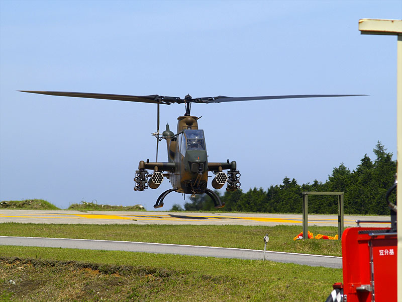 さてそうこうしてるウチに明野からコブラさんのお出まし。こっちが山の上に居るってこともあって、低いところをぶんぶん飛んでくれます。でもってランディング。相変わらず細い機体だなぁ。