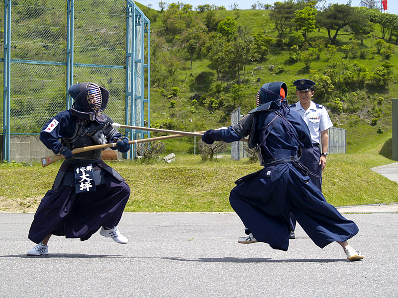 コブラ見物もそこそこに基地へ戻ると、ラッパやら格闘の訓練展示。この辺は陸自の基地祭でもやるんですが、如何せん遠い位置からの見物なんでイマイチ面白くなかったんですが、今回はかぶりつき└(´Д`)┘の位置からの見物。銃剣術かっこいぃ!ってことで影響されやすいワタクシ、家に帰ってから小銃を振り回したとか振り回さなかったとか。