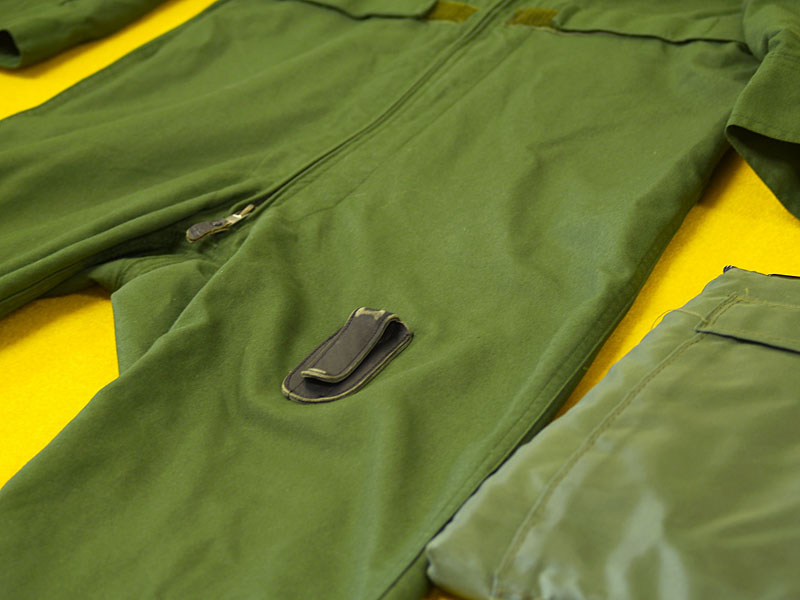 この後は、一人でカレーを喰ってるのを見つかって腕立て伏せ(嘘)だとかT−4の飛来だとかあるんですがその辺は面白ぇ写真が無いんで割愛(;´Д`) 、あとゴルフボールみたいなレーダーも防衛秘っぽいんでパスと。あ、そうだ、1コ賢くなったのがこれ、カバーオールの左足の腿の辺りの黒いフック。どこの国の飛行服にもたいてい付いてるんですが、これ飛行機あるいはヘリの操縦席に座った時に書類を引っ掛けておくクリップだそうで。なるほどねえ。こちとら電熱服の電線でも束ねておくのかと想像してたんですが。電熱服って何時代の話だよ。相変わらず古いタイプの男でございます。