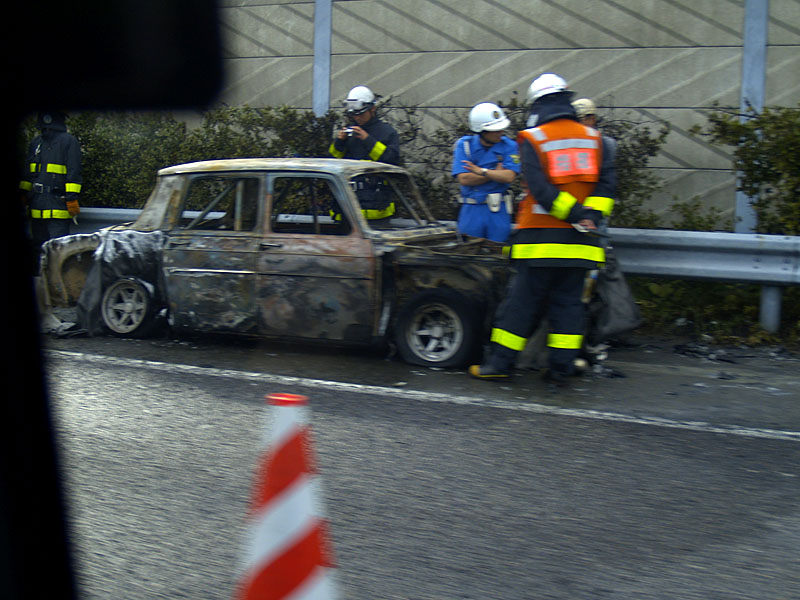 帰り際に高速道路が火災で通行止め。すわ何事かと思ったらルノー8っぽい車が燃えておりました。あー勿体ねえナァ。でも乗ってた人は無事っぽいんでなにより。皆さんもホント身体だけは大切にしてくださいよぉ。てなことで、おしまい。