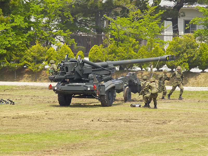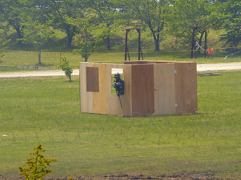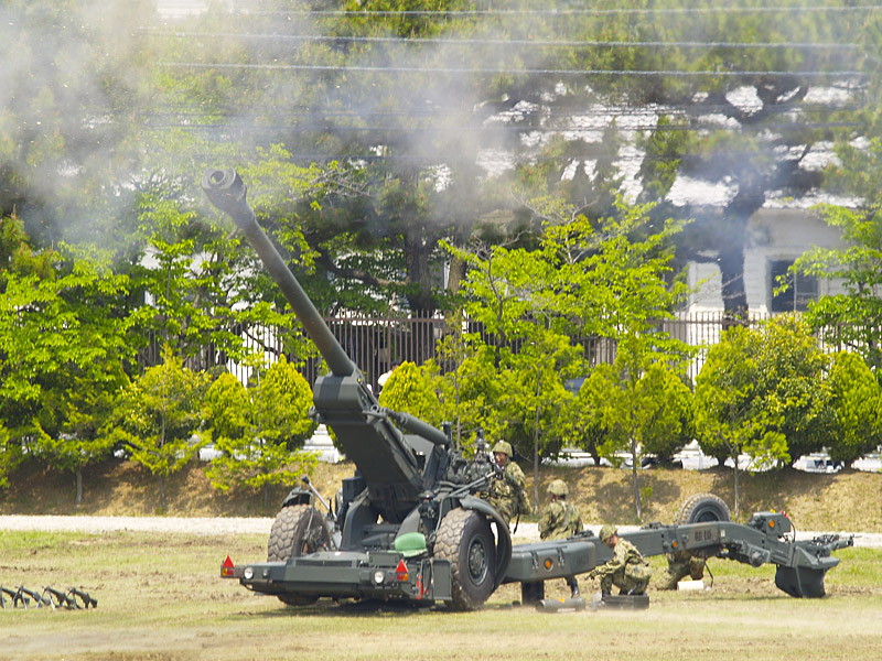さて 訓練展示の内容は、建物内に陣取る悪い奴を制圧ってなシナリオ。ただ今回は単車の事前偵察がなかったなあ。オートバイは朝方走ってたんけど。で今回は初っ端87式のお出まし、同軸機銃をバリバリ撃ちながら前進。その後155mm野砲と74式戦車が陣地進入、射撃なんですが、例によって発射の瞬間を撮ろうとして、撃発のショックでびっくりしてシャッターを切るってなヘタレぶり。写るのは煙ばかりでございます└(´Д`)┘